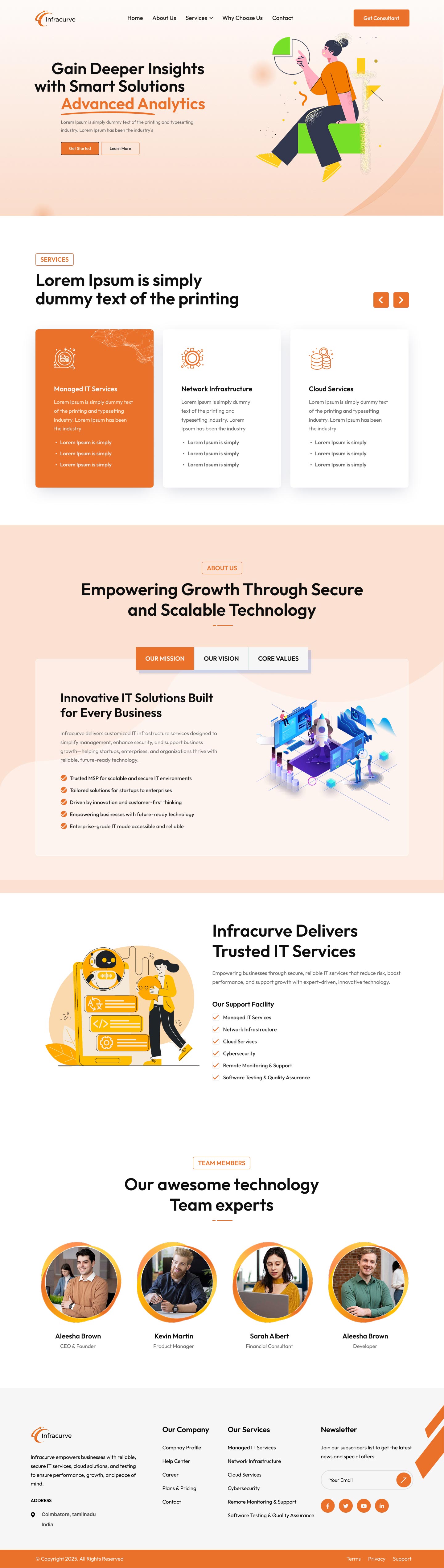 Sleek, professional layouts that reflect your brand's sophistication and emphasize innovation, security, and scalability. Clear and structured navigation for complex IT offerings—like cloud migration, cybersecurity, DevOps, or managed services—making it easy for users to understand and engage.