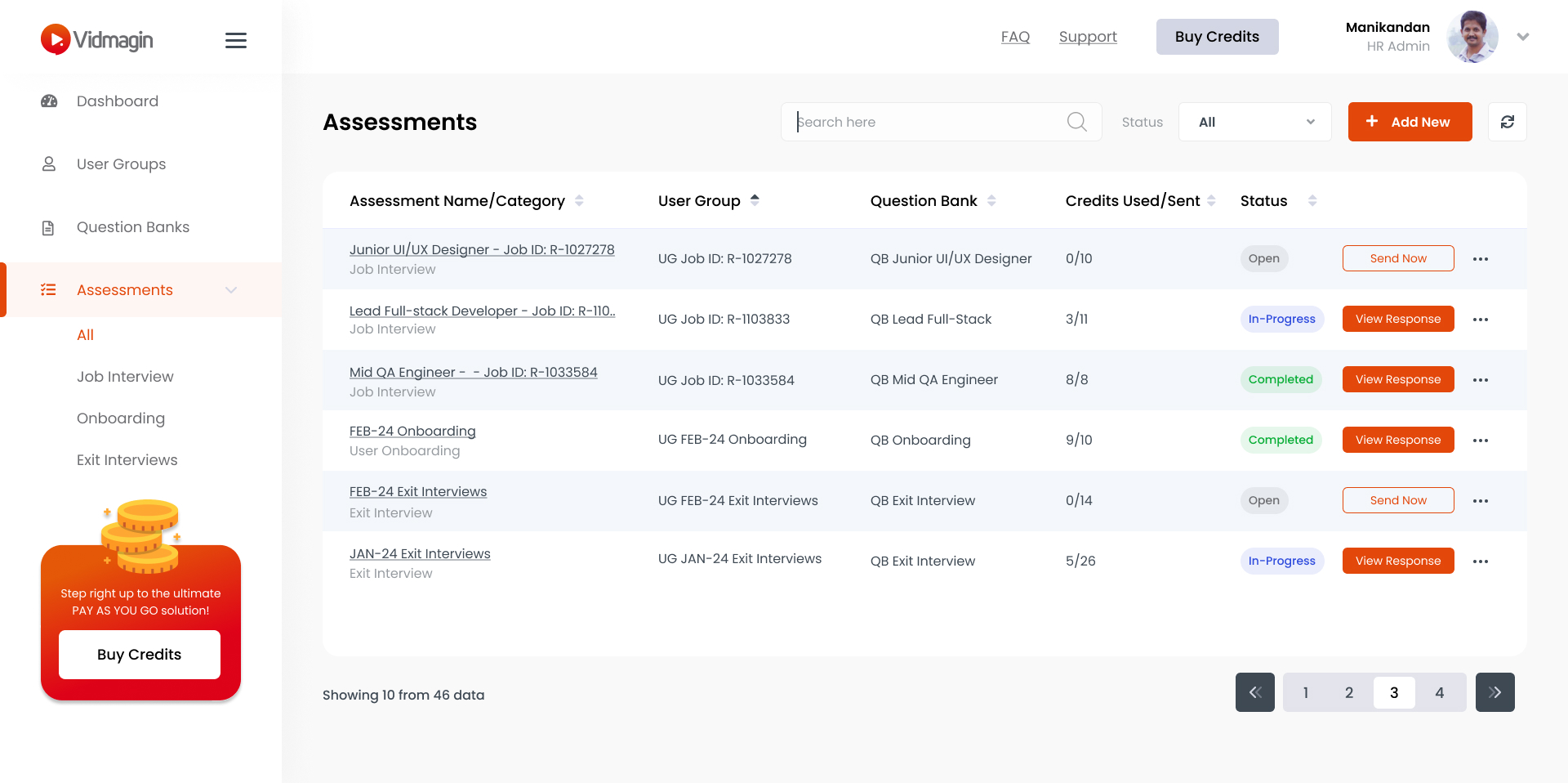 The Vidmagin web app features a sleek, professional UI built for seamless asynchronous video assessments. Clean layouts, intuitive navigation, and smart video interaction tools empower users to evaluate individuals or products with clarity, efficiency, and precision.