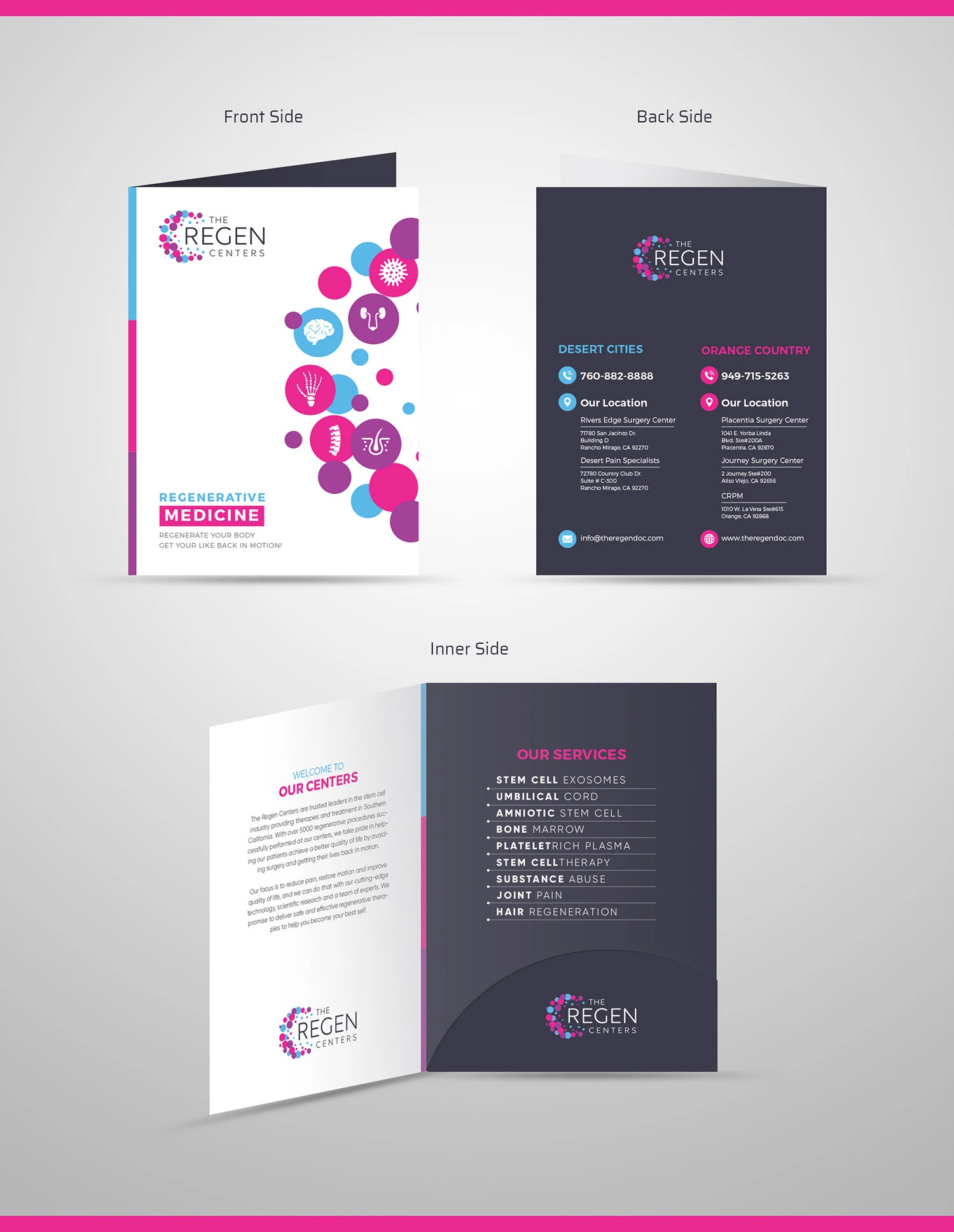 This brochure was crafted for a biomedical company specializing in regenerative stem cell therapies. With a clean, futuristic design and precise messaging, it highlights solutions that restore, repair, and regenerate tissues—promoting healing and improving lives.