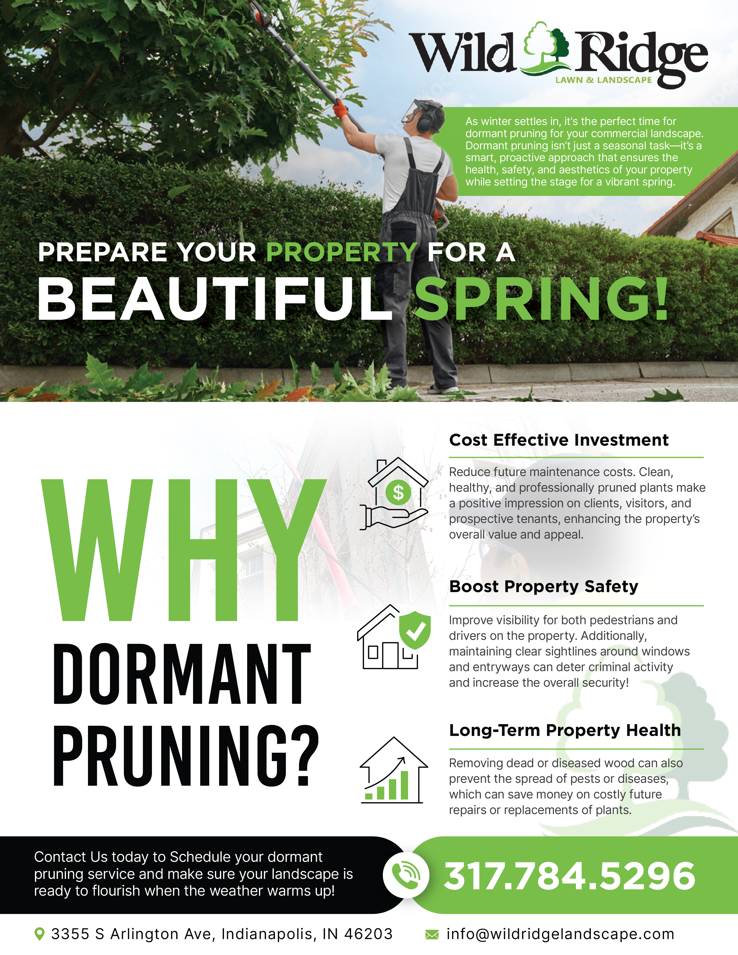 Brochure for Wild Ridge uses natural tones and clean visuals to reflect their commitment to beautiful, eco-friendly outdoor spaces. It highlights services like lawn care, landscaping, and hardscaping, all tailored to create healthy, custom outdoor environments.