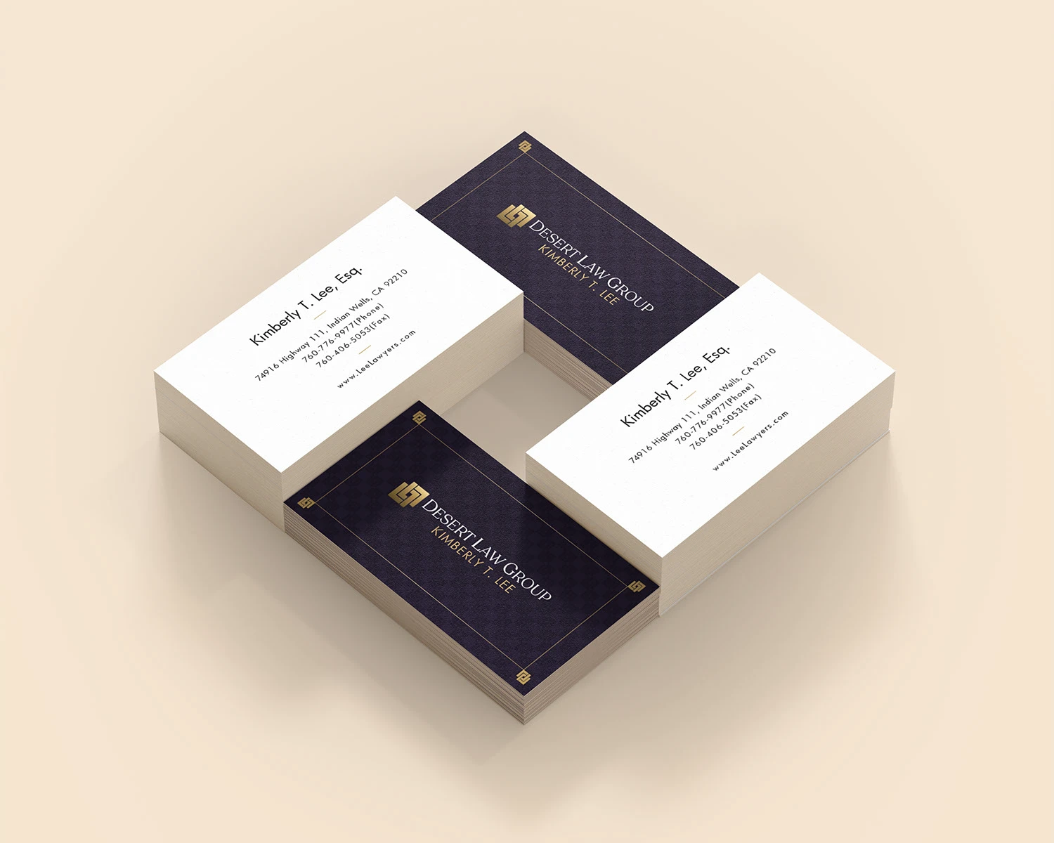 Business card was designed with a classic, elegant style to reflect Desert Law Group's professionalism and trustworthiness. Using refined typography and a clean layout, it communicates their focus on personalized estate planning and elder law services for all life stages.