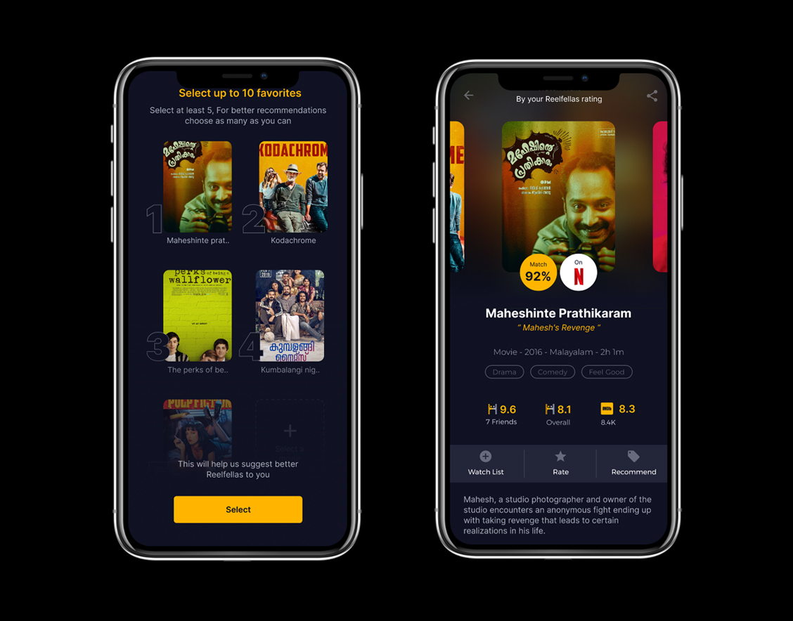 The Reelfellas app UI is designed with a modern, cinematic aesthetic, focusing on easy navigation and user engagement. With intuitive layouts, personalized feeds, and bold visuals, users can connect, explore, and discover movies that match their unique taste and vibe.